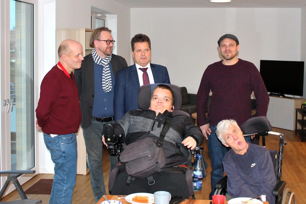 Bei Gesprächen in lockerer Atmosphäre informierte sich der Behindertenbeauftragte über den Tagesablauf der Bewohner und diskutierte mit ihnen über die Vorzüge dieses ambulant-betreuten Wohnangebotes. „Es imponiert mir sehr, wie autonom und selbstbestimmt die Menschen ihr Leben hier gestalten können. Ihre Beeinträchtigung hindert sie nicht daran. Das ist ein wichtiges Zeichen sowie ein großer Erfolg für die Inklusion. Der Martinsclub verfolgt mit dem „Quartier|Wohnen“ eine zukunftsweisende Strategie“, so Dusel. In der Wohngemeinschaft haben seit Oktober vier Menschen mit starker körperlicher und/oder geistiger Beeinträchtigung ein neues Zuhause gefunden. Dort leben sie in ihren eigenen Zimmern, die sie selbst eingerichtet und gestaltet haben. Im Bedarfsfall erhalten sie Unterstützung von speziell ausgebildeten Pflegekräften des Martinsclub. Die Versorgung ist dabei rund um die Uhr an jedem Tag der Woche garantiert.