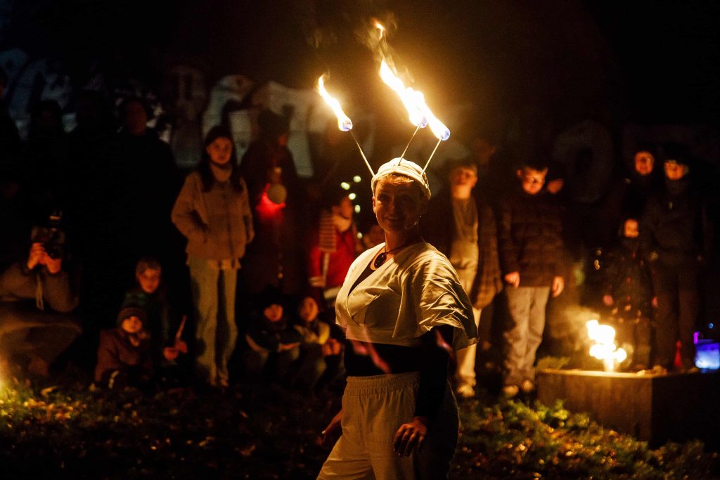 Ziel des Laternelaufens war die Piepe. Dort gab es Bratwurst, Gebäck und Heißgetränke. Und es entwickelte sich ein geselliger Ausklang. Das große Finale war dann eine Feuershow. Diese wurde von der Jonglage-Künstlerin Silke Schirok aufgeführt. Für die Kinder gab es ein weiteres Highlight. Polizei, Feuerwehr und Johanniter stellen ihre Einsatzfahrzeuge aus. Dazu erklärten die Einsatzkräfte ihren Berufsalltag.
