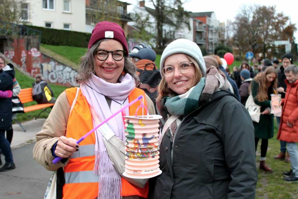 Ermöglicht wurde das Piepe Leuchten insbesondere durch die Sparkasse Bremen. Sie hat die Veranstaltung finanzielle unterstützt. Auch Polizei, Feuerwehr, Johanniter und das Ordnungsamt Bremen hatten ihren Anteil am Gelingen des Laternenumzuges. Sie haben für einen geregelten Ablauf gesorgt. „Der Sparkasse Bremen sowie den Einsatzkräften danken wir von Herzen. Die Zusammenarbeit war sehr vertrauensvoll. Ohne diese Unterstützung wäre das Piepe Leuchten nicht möglich“, so Renke. Ebenfalls mit dabei waren einige Neustädter Einzelhändler. Sie haben die speziell fürs Piepe Leuchten gestalteten Laternen in ihren Geschäften zur Mitnahme angeboten. Stadtteilmanagerin Dietze dazu: „Da hält die Neustadt eben zusammen. Das ist wirklich schön zu sehen. Dankeschön an alle teilnehmenden Geschäfte.“ Der Erlös der Laternenspenden fließt in einen guten Zweck. Mit dem Geld finanziert der Martinsclub inklusive Bildungs- und Freizeitangebote. Außerdem haben viele Besucher:innen ihre Pfandbecher gespendet. Das Geld wird ebenfalls in die Inklusionsarbeit des Martinsclub investiert.
