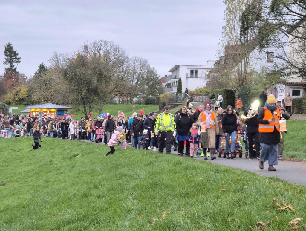 Festlich, fröhlich und gut besucht. So ging der inklusive Laternenumzug Piepe Leuchten über die Bühne. Er wurde vom Martinsclub und dem Neustadt Stadtteilmanagement organisiert. Zur Einstimmung sang die Martinsclub-Band „ClubRock“ einige bekannte Laternenlieder. Die Lastenradbühne BIKE IT-Stage diente als Bühne. Anschließend setzte sich der mehrere hundert Personen umfassende Tross in Bewegung. Angeführt von einer Blechbläsergruppe, die ebenfalls einige Martinslieder zum Besten gab. Vom Werdersee ging es die Kleine Weser entlang. Viele Laternen in allen möglichen Formen und Farben brachten den Umzug zum Leuchten. Und das Wetter blieb trocken!