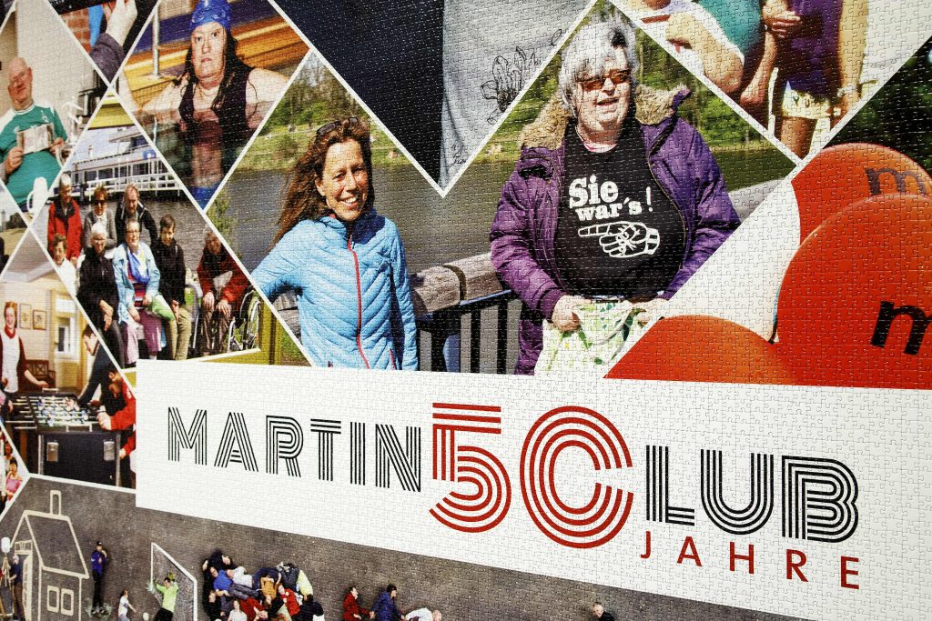 Zum 50-jährigen Jubiläum hatte der Martinsclub zum Puzzeln aufgerufen. In Gemeinschaftsarbeit sollte ein 14 Quadratmeter großes Puzzle entstehen. Im Frühling wurden dafür über 100 Teilsegmente verteilt. Diese bestanden aus etwa 500 Teilen. Die zusammengesetzten Stücke wurden anschließend zu einem Gesamtwerk zusammengebaut. Kürzlich wurde das fertige Puzzle dann in Huckelriede enthüllt. Zum Vorschein kam ein 7 mal 2 Meter großes Puzzle der Superlative. Es zeigt eine Fotocollage mit Bildern aus 50 Jahren Martinsclub. Insgesamt besteht es aus 52.110 Teilen.