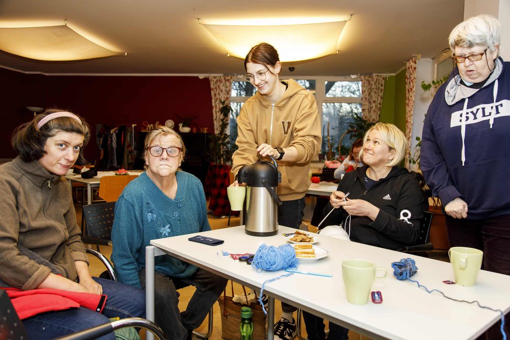 Beim Martinsclub ist ihr aktuelles Einsatzfeld das Ambulant betreute Wohnen in der Bremer Neustadt. Heißt: Krompholz kümmert sich um Menschen mit einer Beeinträchtigung, die alleine wohnen und bei Bedarf Hilfe anfordern. Im Verlauf der dreijährigen Ausbildung wechseln die Tätigkeitsbereiche. So kann sich Krompholz einen Überblick über alle relevanten Bereiche beim Martinsclub verschaffen. Etwa die Schulassistenz oder den Bildungs- und Freizeitbereich. „Das ist eine gute Möglichkeit, weitere Felder der Behindertenhilfe kennenzulernen und so viel Wissen wie möglich mitzunehmen“, meint sie. Daneben sorgt der Martinsclub zusätzlich für Weiterbildungsangebote, um die Auszubildenden so gut wie möglich aufs Berufsleben vorzubereiten. Doch trotz sinnstiftender Tätigkeit und Arbeit nah am Menschen wird es häufig stressig. Denn der Fachkräftemangel schlägt im Sozialwesen voll durch: „Das merkt man schon. Immer wieder fallen Kolleg*innen aus. Man muss oft einspringen und sich gegenseitig helfen. Da ist ein guter Teamgeist wichtig“, so Krompholz. Doch in der schwierigen Personalsituation auf dem Arbeitsmarkt liegt auch eine Chance. „Gut ausgebildete Fachkräfte werden mit Kusshand genommen. Wer eine Ausbildung in der Heilerziehungspflege vorweisen kann, kann sich seinen Job im Prinzip aussuchen. Es ist also ein krisenfestes Berufsfeld mit besten Zukunftsaussichten. Auch wir beim Martinsclub streben bei entsprechender Eignung eine Übernahme unserer ausgelernten Auszubildenden an. Denn wir wissen, was wir an unserem beruflichen Nachwuchs haben“, sagt Linda Junk, die die Ausbildung beim Martinsclub koordiniert.